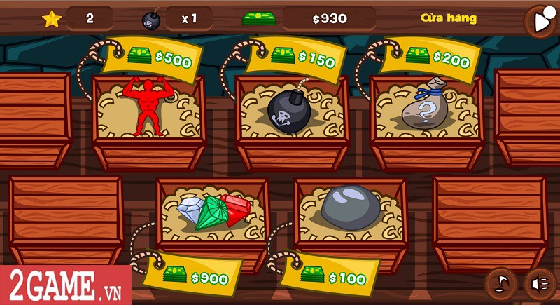 Càng về sau, người chơi sẽ càng gặp nhiều khó khăn khi có nhiều tảng đá lớn che chắn trước những đồ giá trị, làm mất khá nhiều thời gian của người chơi để kéo chúng ra khỏi vị trí đó. Chính vì vậy, sau mỗi màn chơi, người chơi có thể vào shop để mua các vật phẩm cần thiết như thẻ tăng sức mạnh giúp thời gian kéo nhanh hơn, mua thêm bom để cho nổ những viên đá lớn khi lỡ gắp phải để tiết kiệm thời gian.
