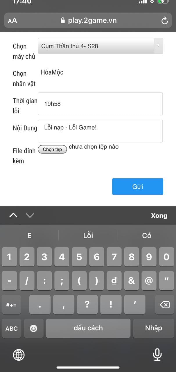 - Điền thời gian xảy ra lỗi và nội dung lỗi. Càng chi tiết thì sẽ giúp các ADMIN dễ tìm kiếm và check lỗi nhanh cho bạn đấy!! Đừng quên kèm theo 1 vài tấm ảnh lỗi cho dễ hình dung nhé!! Các ADMIN sẽ rất thấy biết ơn đấy <3