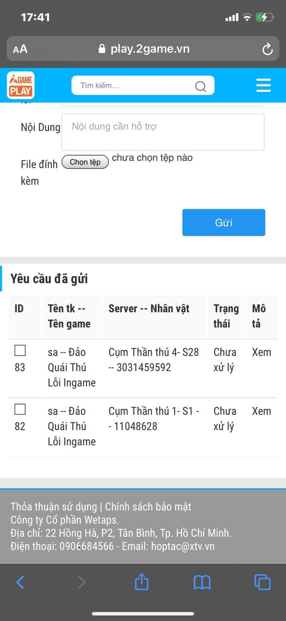 - Đầu tiên: Các bạn cần đăng nhập vào link này: https://play.2game.vn/help/report.html