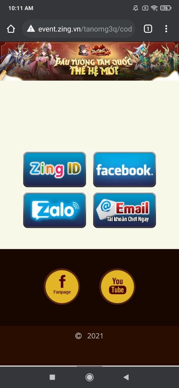 Bước 2: Đăng nhập vào tài khoản tương ứng (ZingID, Facebook, Zalo hoặc Email đối với tài khoản chơi ngay đã liên kết với email).