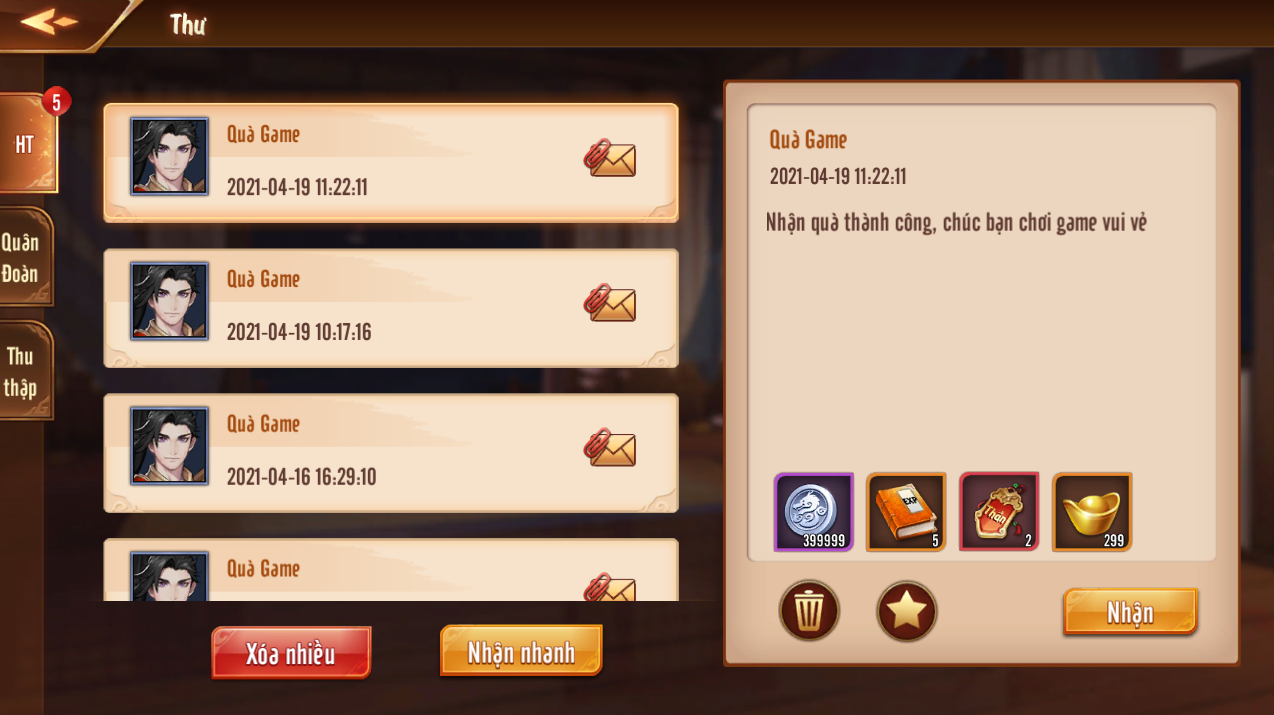 Bước 4: Sau khi nhận được thông báo nhập code thành công, bạn hãy vào Thư trong game để nhận quà nhé!