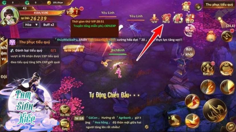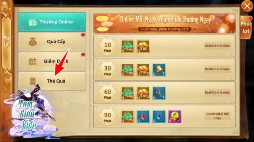 Lưu ý: Để mở xuất hiện tính năng sử dụng, nhập Code TAM SINH KIẾP thì nhân vật chính của bạn cần đạt tới cấp 35, mở khóa Phúc Lợi.