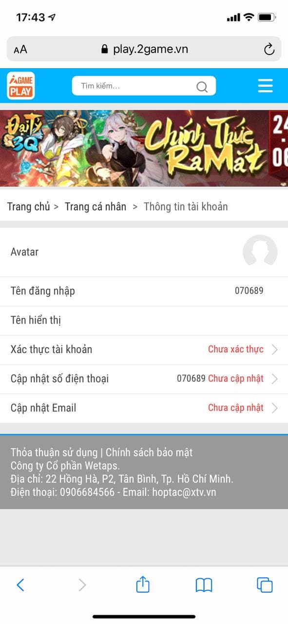 - Đầu tiên: Truy cập trang: https://play.2game.vn/ và đăng nhập tài khoản các bạn đang có hiện tại.