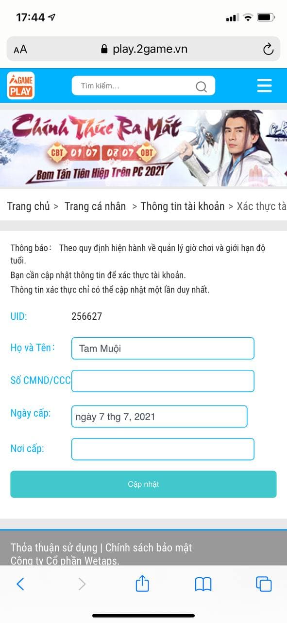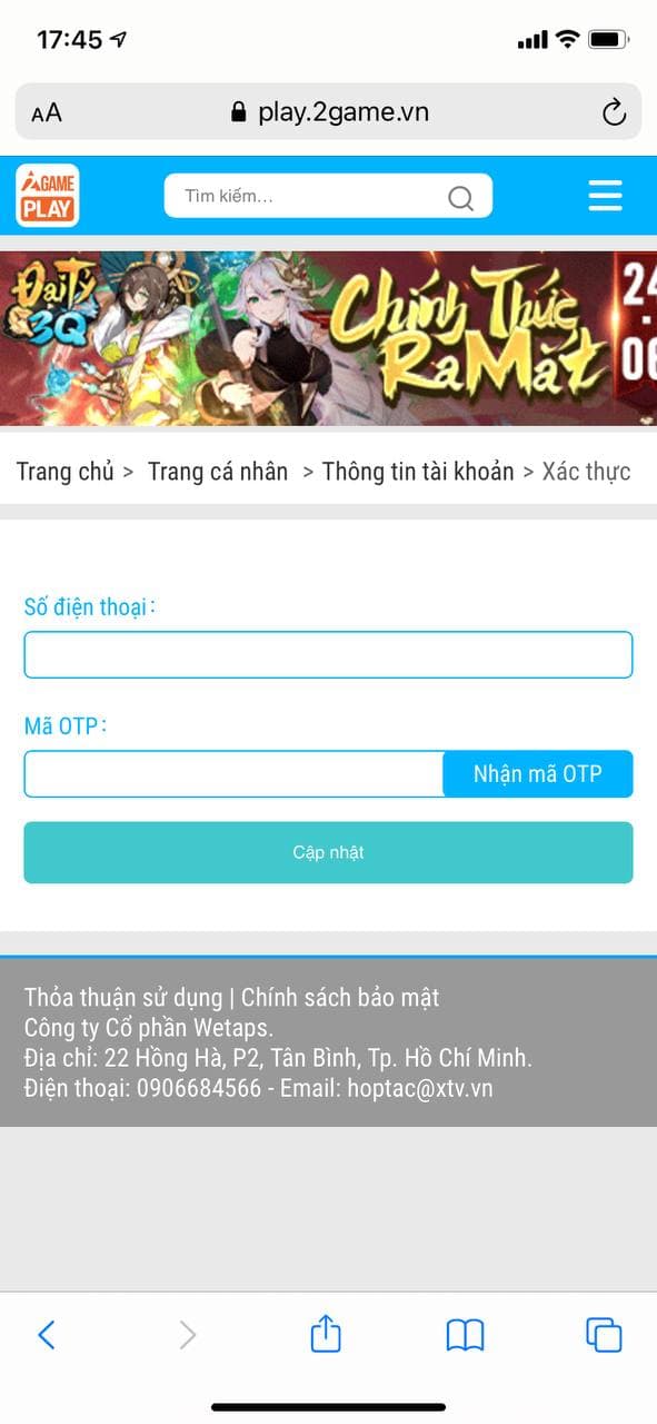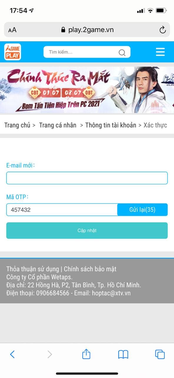 - Nhập mã OTP rồi cập nhập là hoàn tất đấy!!!