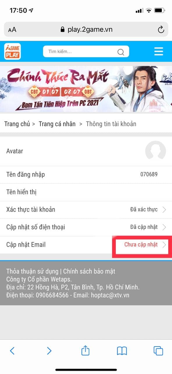- BẢO MẬT VỚI EMAIL: Khi nhấp chuột vào chưa xác thực ở mục Cập nhật Email xuất hiện thông tin: