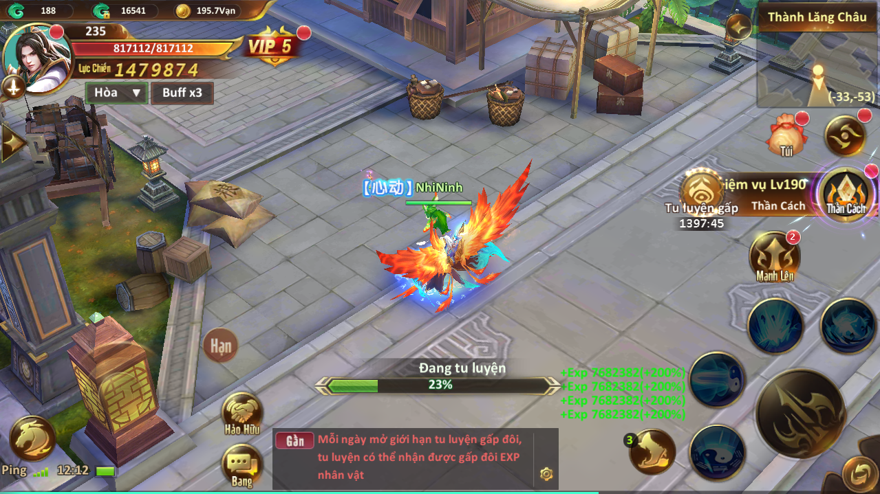 - Hình thức tu luyện tại chủ thành Lăng Châu nhận thêm exp