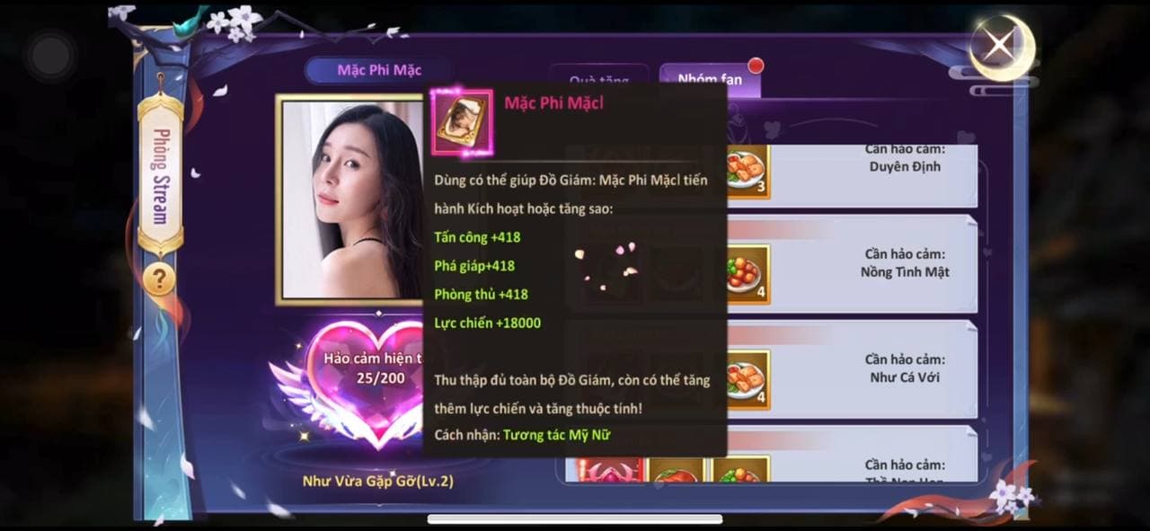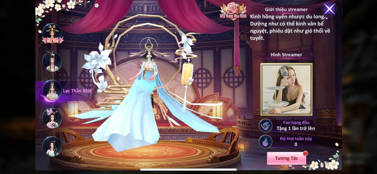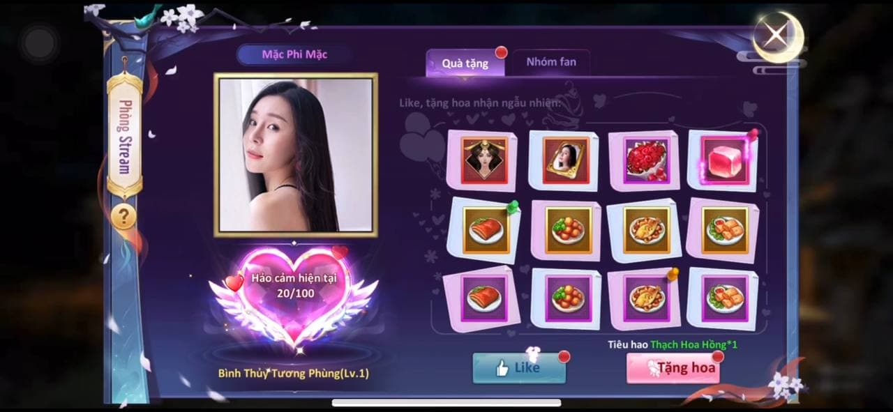 Người chơi sẽ tiến hành tương tác với Mỹ Nữ mình yêu thích bằng các cách Like và tặng Bảo Thạch Hoa Hồng