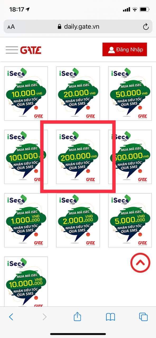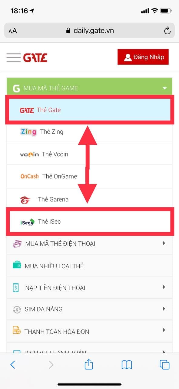 - Chọn loại thẻ bạn muốn mua ( GATE - ISEC)