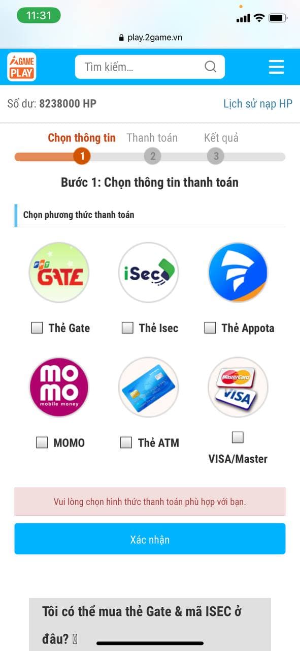 - Sau khi chọn mệnh giá và xác nhận xong, bạn chỉ cần copy lại rồi về web: https://play.2game.vn/wallet/ nạp thôi ~~