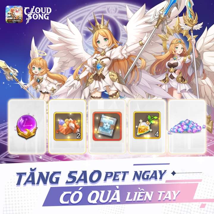 Ngoài ra, với những ai là “thần nuôi Pet” trong Cloud Song VNG, chắc chắn sẽ không thể bỏ lỡ ưu đã siêu to siêu khổng lồ của tựa game. Cụ thể, sau khi update phiên bản mới: Chill tiệc gia viên, các Skywalker sẽ nhận được những phần quà hậu hĩnh từ việc nâng sao cho Pet của mình, ưu đãi được áp dụng cho toàn bộ các máy chủ. Phần quà sẽ bao gồm Kim cương, Chuông gió và nguyên liệu nâng cấp Pet cực quý hiếm…